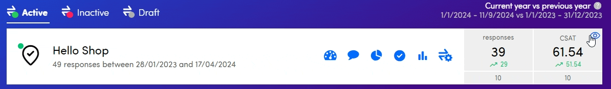 Good to know: it is possible to hide the evolution for certain touchpoints directly on the homepage by clicking the eye icon next to the evolution. Be aware that only administrators can change this while this impacts all users. So if an administrator hides the evolution of a certain touchpoint, no one will be able to see it.