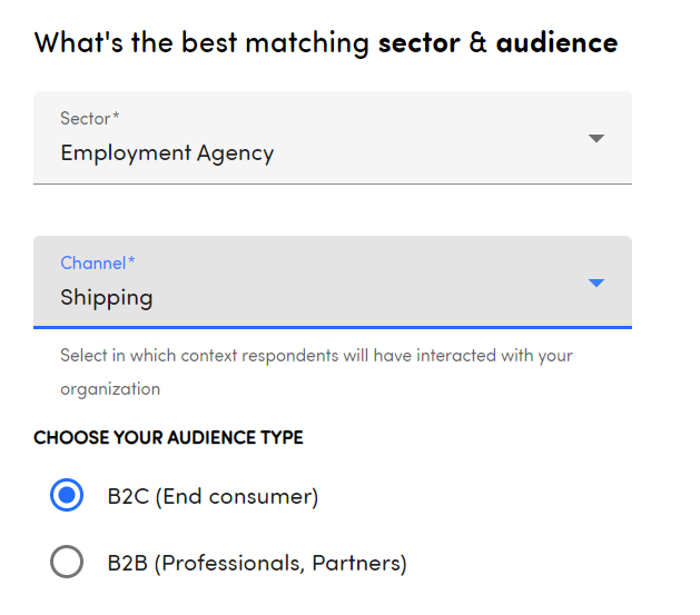By choosing a default sector (represents what kind of business your company does and what kind of products or services are sold.), audience and channel (represents the way your customer came into contact with your company), these preferences will automatically be filled out when setting up a new touchpoint. Choosing the correct ones is very important to get the most out of your text analysis. Get an overview of all the available sectors and channels.