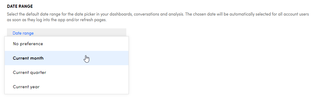 The default date range has an impact on the date picker in the platform. Each time a user logs in, the default date range will be selected.