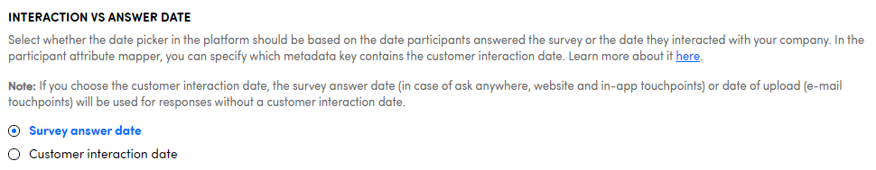 Choose whether the date picker in the platform is based on the answer date or on the interaction date