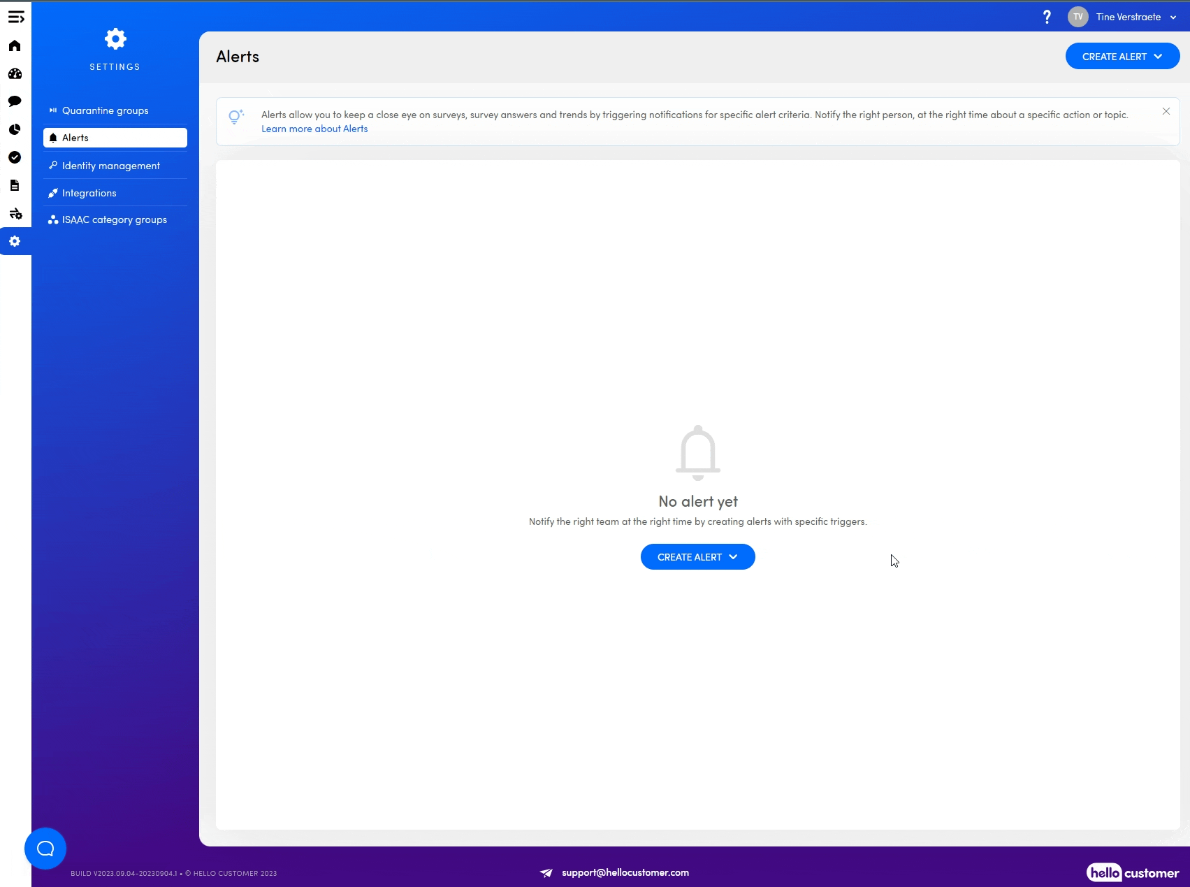 With alerts, it's very easy to follow up on specific customer feedback. Share negative feedback for swift issue resolution, and engage your teams by sharing positive feedback. Next to that, it's handy to follow up if everything goes well technically, and soon, it will also be possible to follow up on trends in your data.