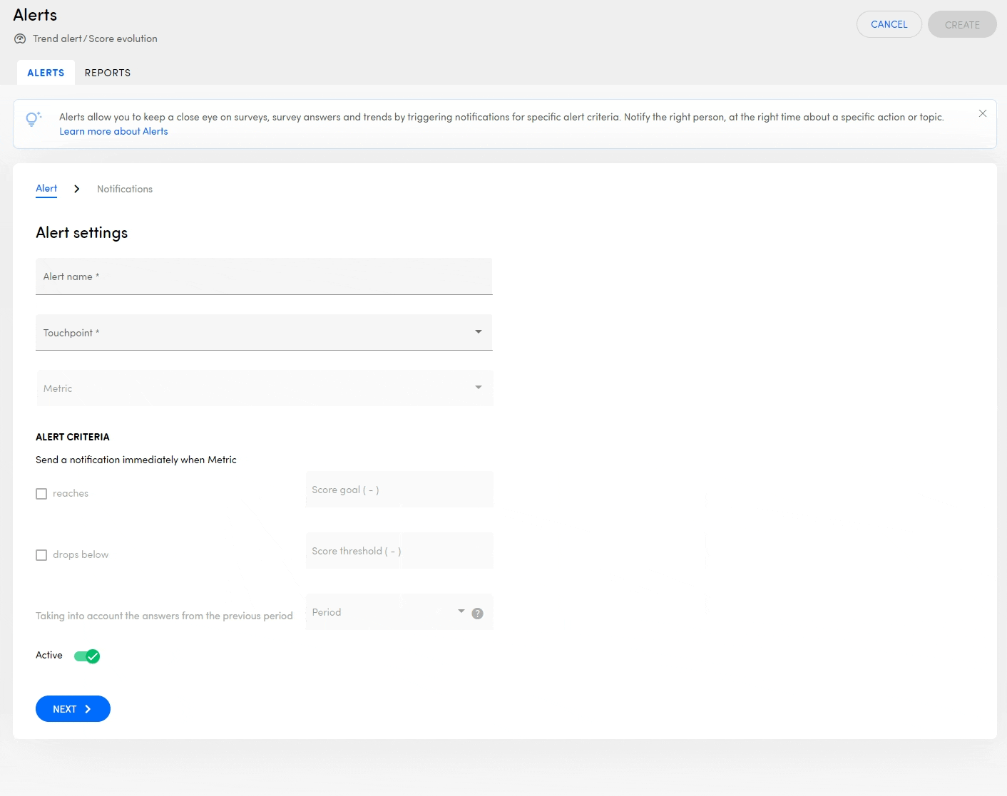 You can only set up a survey answer alert after at least one response has been collected for the touchpoint you want to monitor.