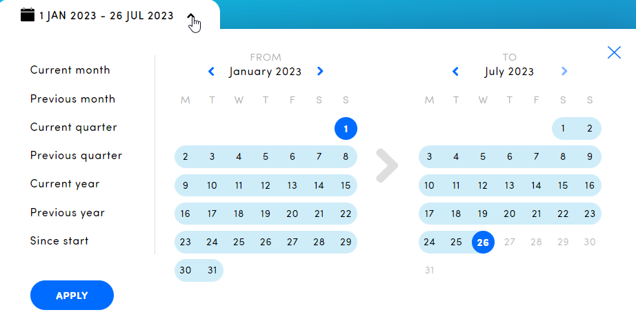 With the date picker on top of the page, you can choose for which period you want to see the NPS.