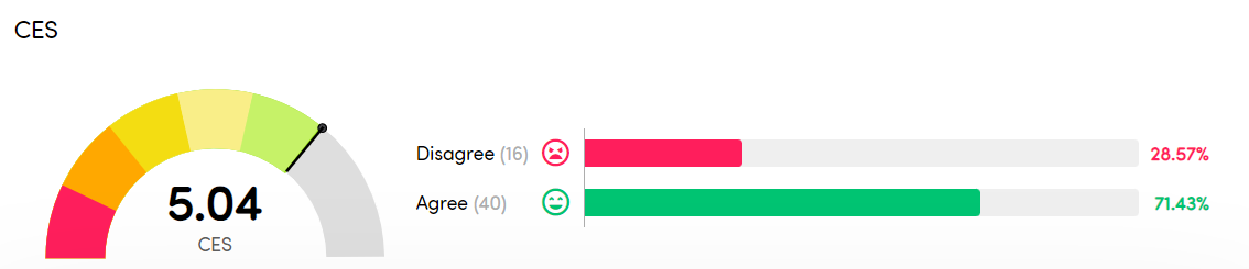 - CES = 5,22, with 18 people answering the survey