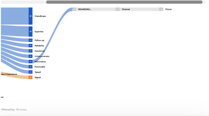By clicking this, the graph expands and you see the category combination Channel/Phone appear. This means that the customer is talking about the information they received over the phone.