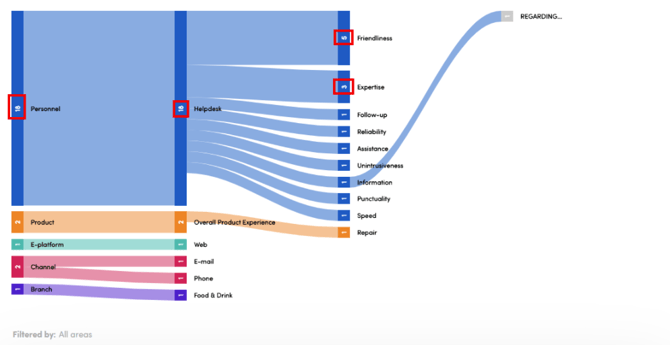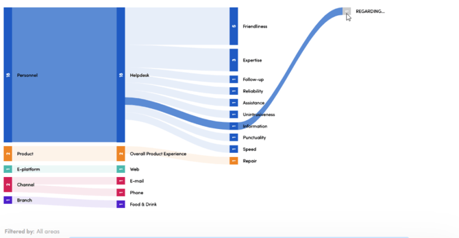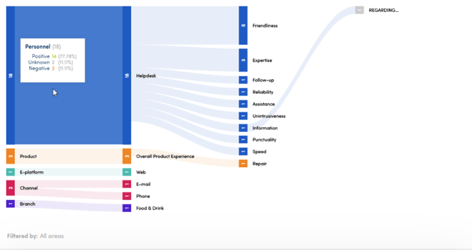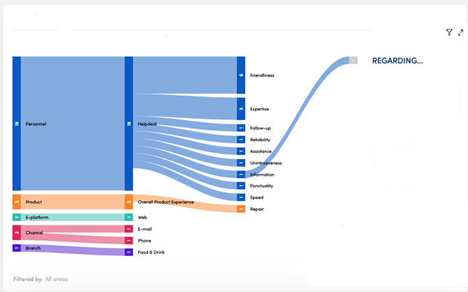 It is possible that you will see the word Regarding next to your subcategories. This adds another level to the analysis, to provide you even more detail. If you click on this, the graph will expand to the right and you will see a linked combination of a main category and subcategories.