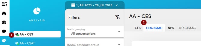 Step 2: Choose the touchpoint for which you want to see the analysis and go to the NPS-ISAAC, CES-ISAAC, or CSAT-ISAAC tab, depending on which metrics are available in your touchpoint.