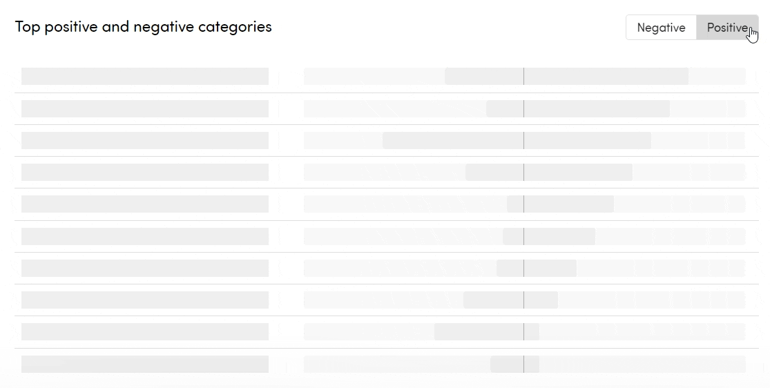 - On the left side of the graph, the gray bar indicates how often this category was mentioned with negative or very negative sentiment.