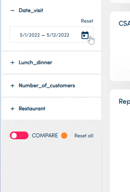 You can activate the compare functionality when you want to compare two consumer segments, such as younger and older customers.