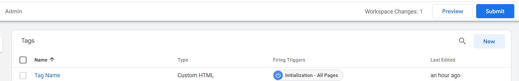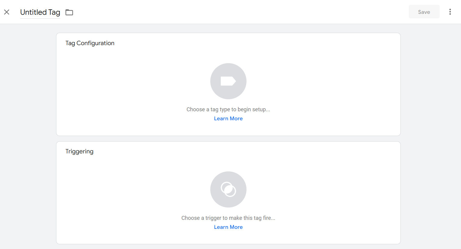 3.3. Now, you can click on the 'New' button to create a new tag. You can give the tag a name of your liking and you can start choosing your trigger and your tag type.