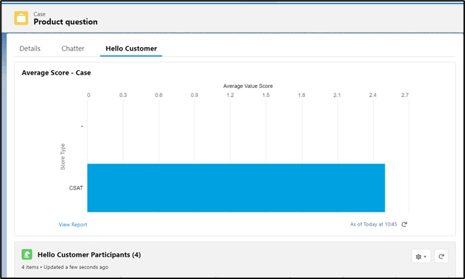 The Salesforce connector is a bi-directional (almost) out-of-the-box integration between Salesforce (SFDC) CRM and the Hello Customer platform. It enables you to have your CRM data used as metadata and respondent data within Hello Customer and to display the feedback and scores on the right places in SFDC!
