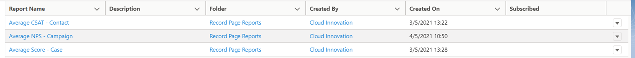 - Average CSAT/NPS/CES graphs on cases, campaigns, events and contacts