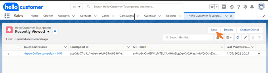 2. Select ‘New’ to set-up a new touchpoint in SFDC
