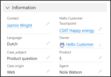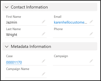 In SFDC this is linked to the case/campaign/event and the contact object and contains the data that will be sent over to Hello Customer. Adding extra metadata will therefore always mean that these data fields need to be added and mapped on this object (more info on this later on).