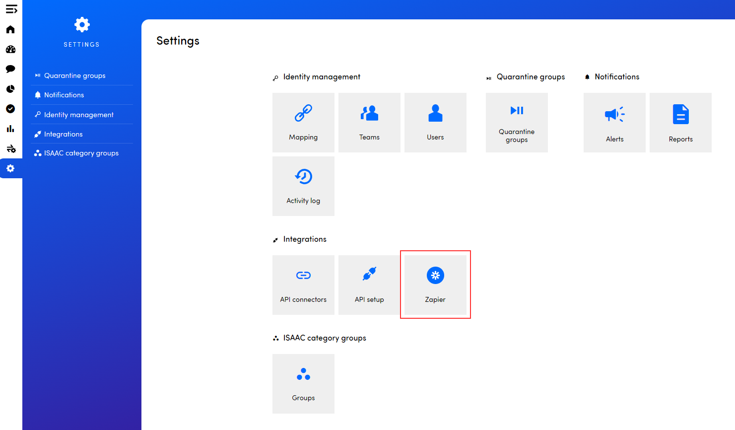 - Option 2: Click on Integrations in the left navigation menu and click on the Zapier tab