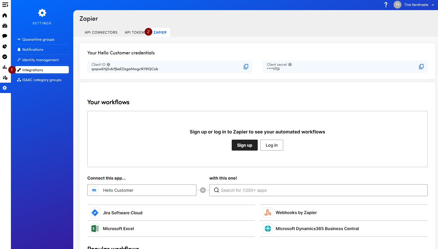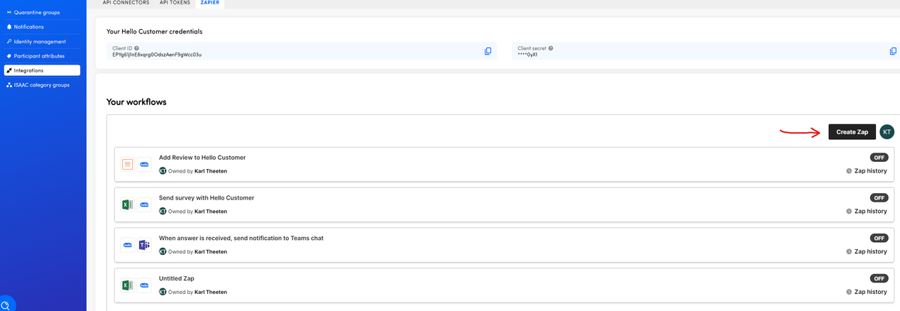 - First of all, copy your Client ID and Client Secret from the Zapier page in the platform and keep it handy. You will need this later on!