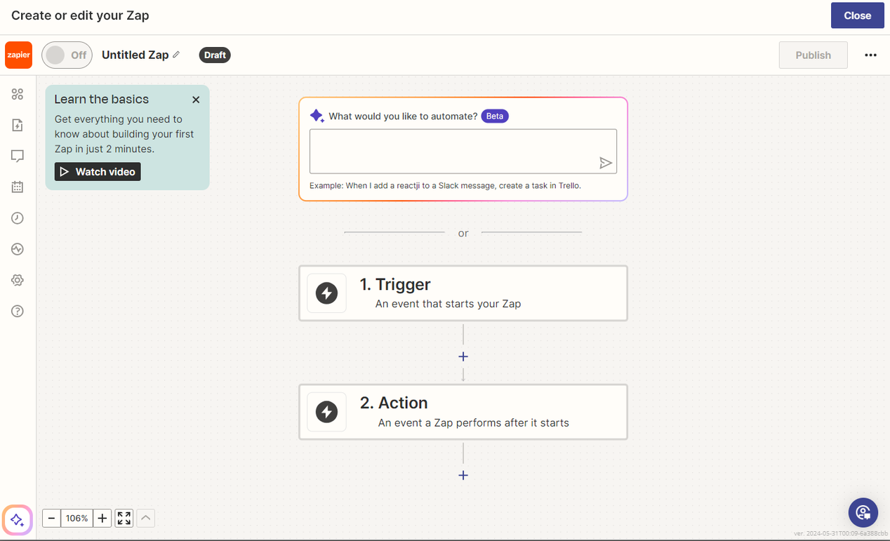You can watch a short video to learn the basics, and you can use the AI tool to create a zap automagically.