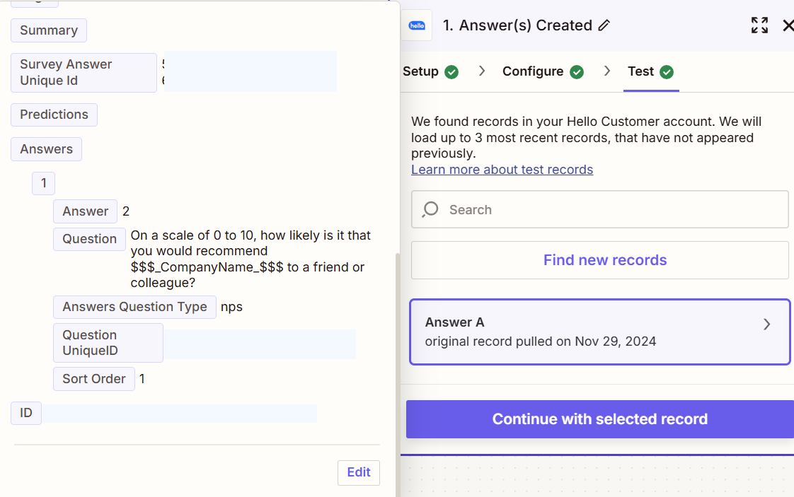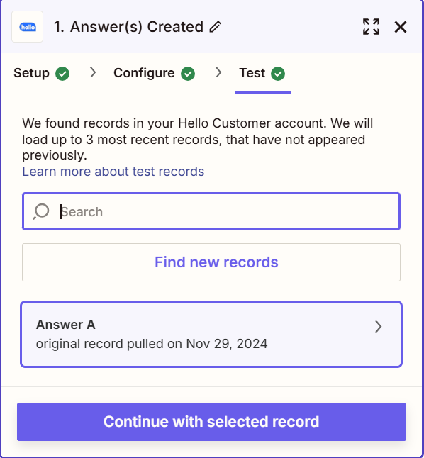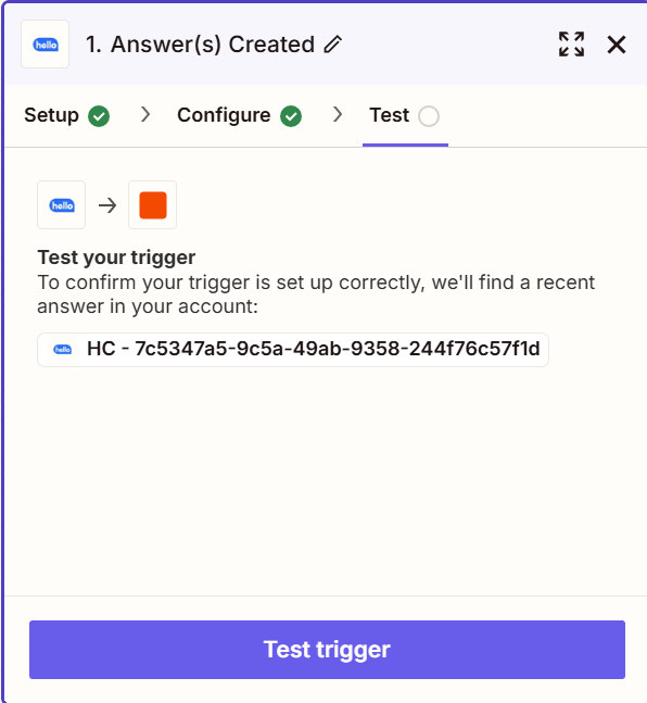 Once configured, the trigger can be tested to be sure data is being pulled from Hello Customer.