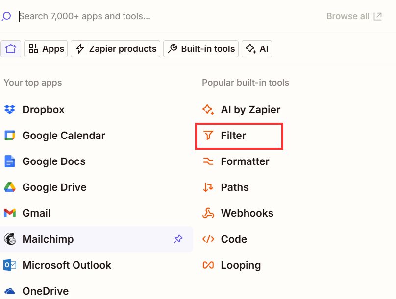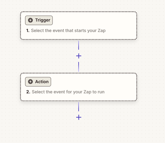 When you select this option you are redirected to a page with a simple schematic of a workflow where a Trigger connects to an Action.