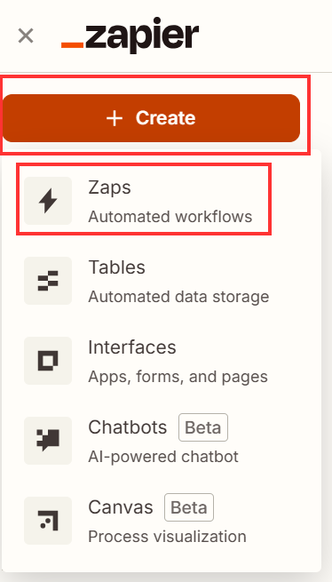 Go to Zapier and access using an account. Signing up can be done for free. Once logged in, you can start creating zaps (automated workflows).