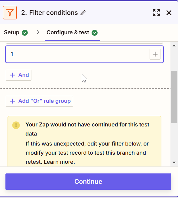 Now we configure a filter so only bad reviews are taken into consideration for activating an action on Zendesk.