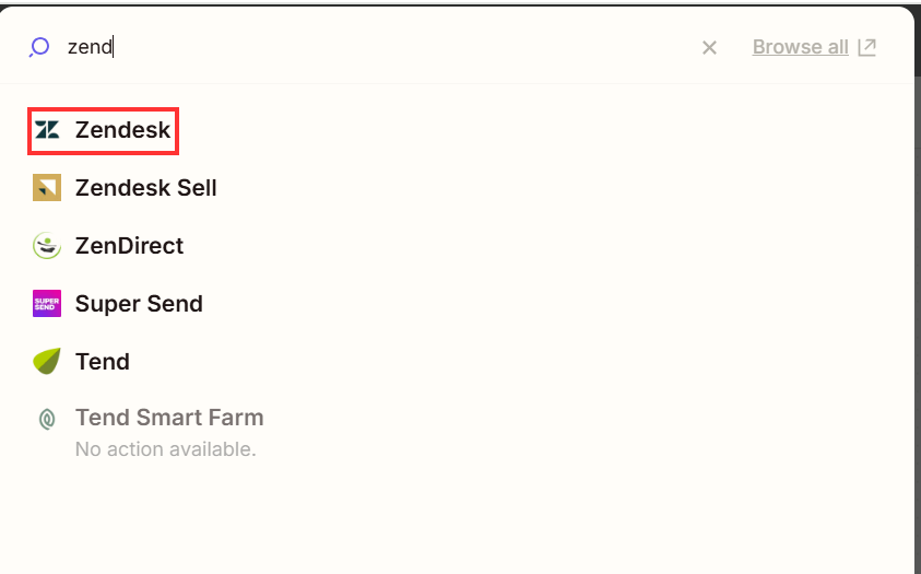 Zendesk offers different events to take place, like creating a new ticket. Depending on the use case, one or another can be selected.