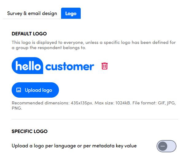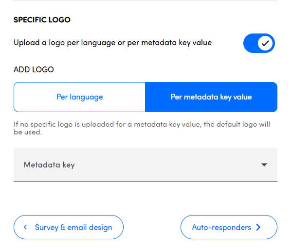 Different logos can be uploaded per language or per metadata key value. This improves greatly the personalization of your surveys!