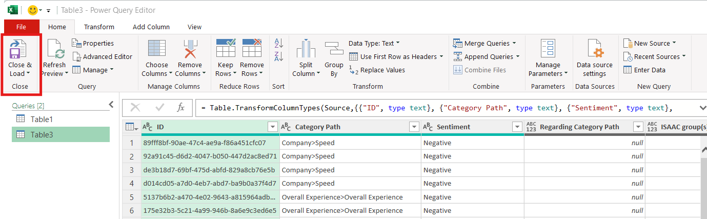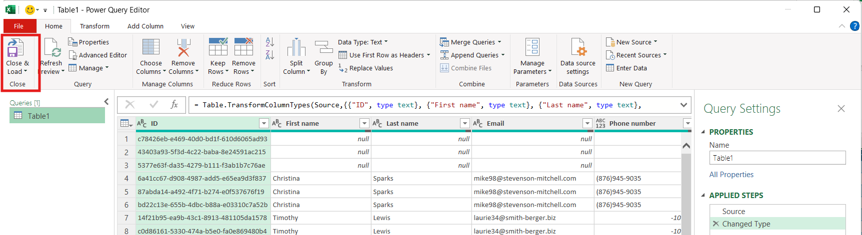 - In Power Query, click Close & Load to load the data to a new sheet in the same file.