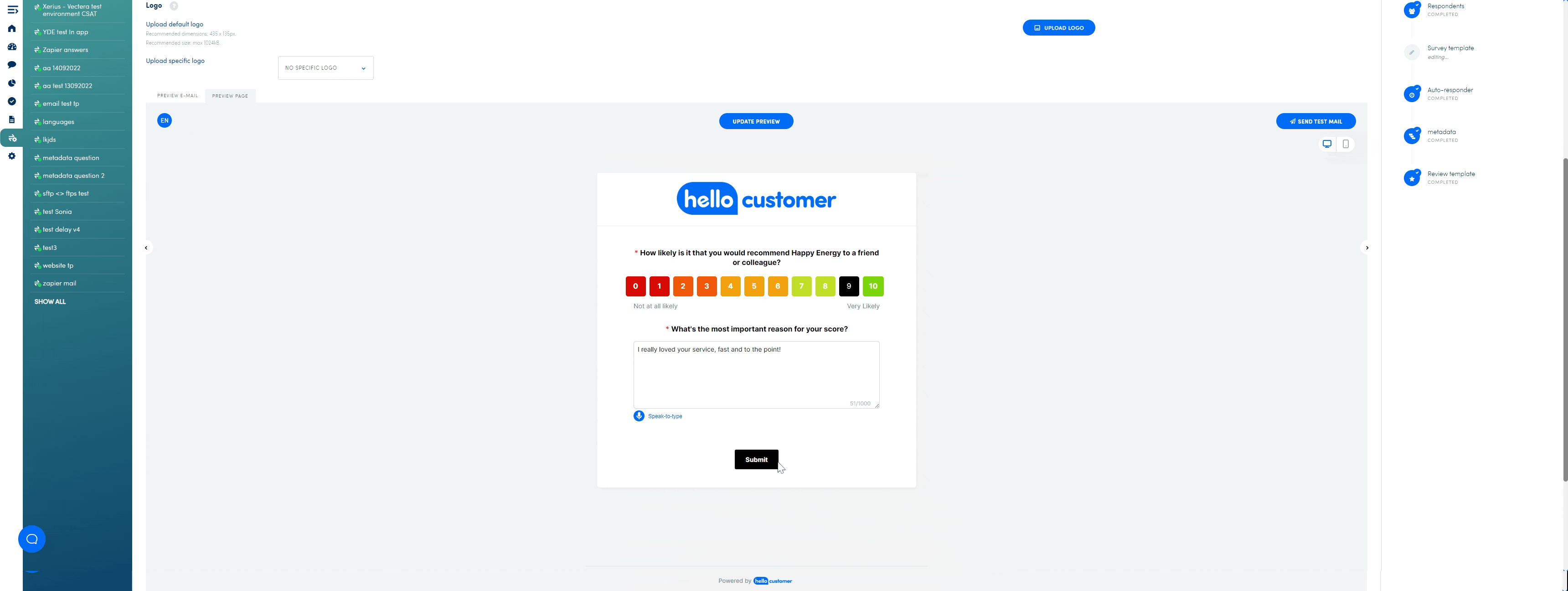 With the API call Read: answers, you can also get the answers out of our platform. You can select yourself the relevant feedbacks to be displayed on your website, app or internal screens.