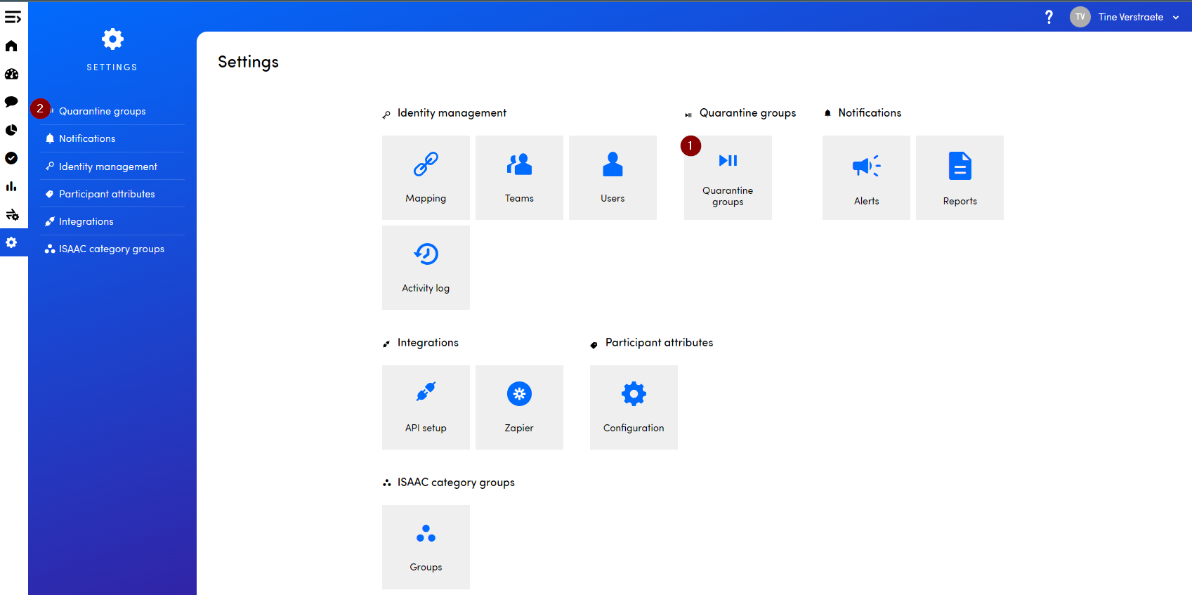 - Option 2: Click on Quarantine groups in the left navigation menu (2)