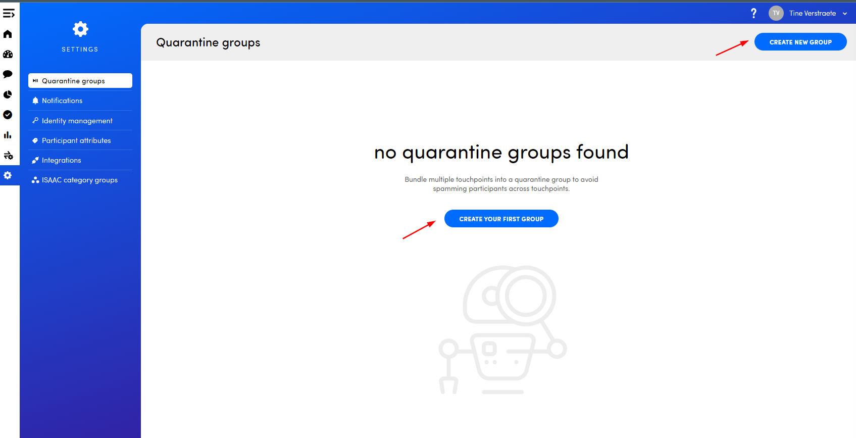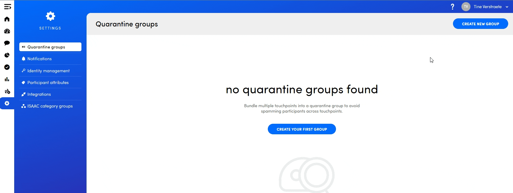- A different quarantine period can be set up for every touchpoint, but it is also possible to create a 'quarantine group' to bundle touchpoints under 1 quarantine period.