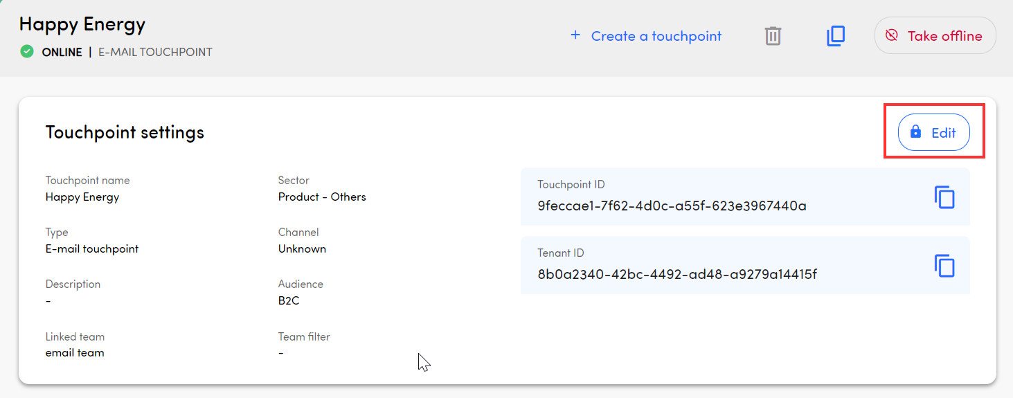 Or go to the touchpoint setting page and select the touchpoint you want to work on.