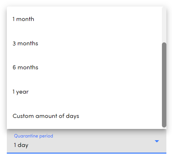 After enabling the quarantine period, you get the option to set a reminder period. The reminder period option only appears when a quarantine period has been set.