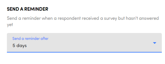 What is a reminder period? It is a pre-set period of time after which the participants who have received a survey but haven't answered it, will be sent a reminder of the survey so they can fill it up.
