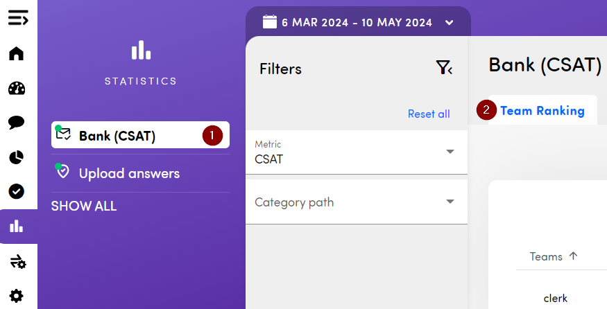 Step 2: Choose the right touchpoint (1), you are automatically directed to the Team Ranking (2).