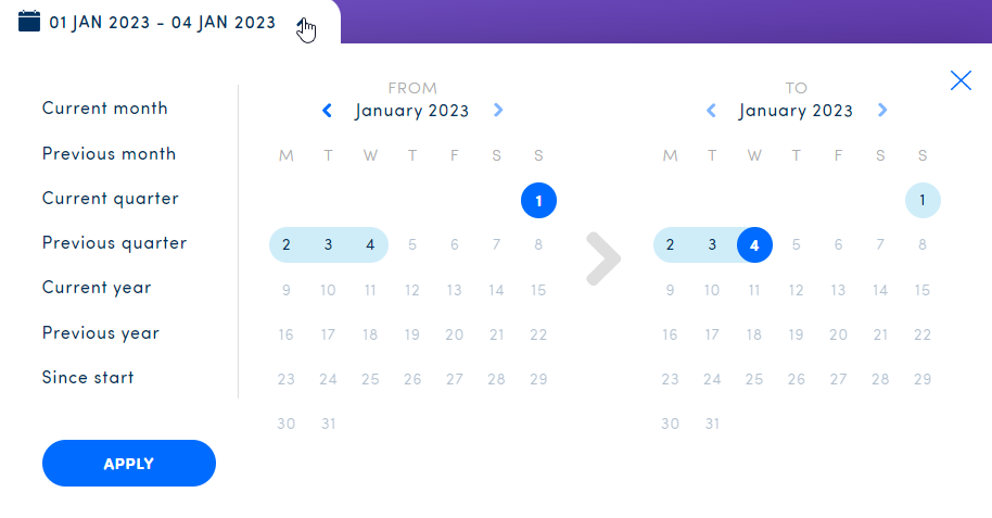 With the date picker on top, you can choose the period for which you want to see the team ranking.