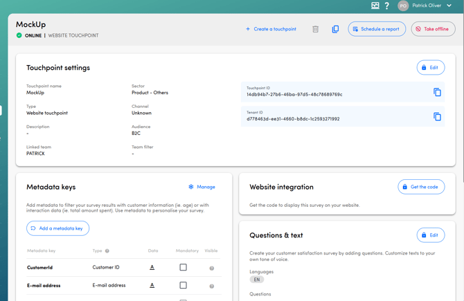 1 In the navigation bar on the left, click Touchpoints2 Go to the Touchpoint settings of your Touchpoint