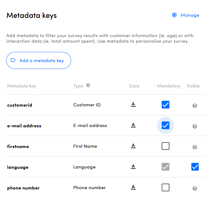 - Fields like “Email” or “ID” are present on the file and contain data if they are checked as mandatory on the touchpoint.