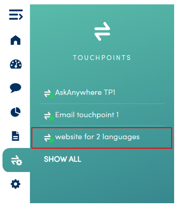 - In touchpoint settings, select the touchpoint you would like to integrate in your website.