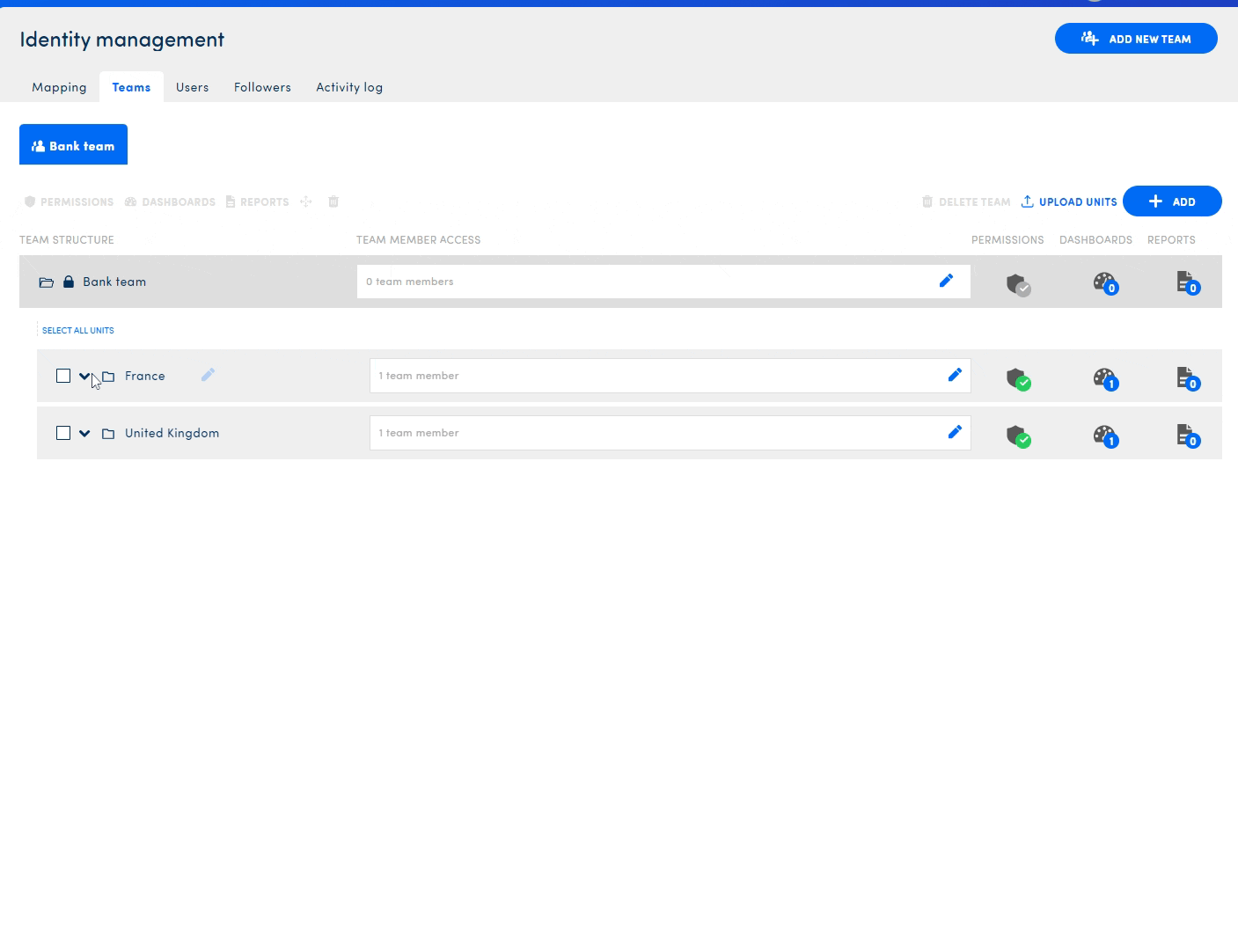 Of course, all users only see the part of the team structure they have access to. If a certain user only has access to one team on the lowest level of the structure, no team filter will be displayed in the smart filtering.