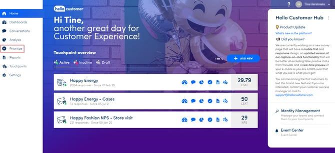 Step 1: On the home page of your Hello Customer account, click Prioritize on the left side: