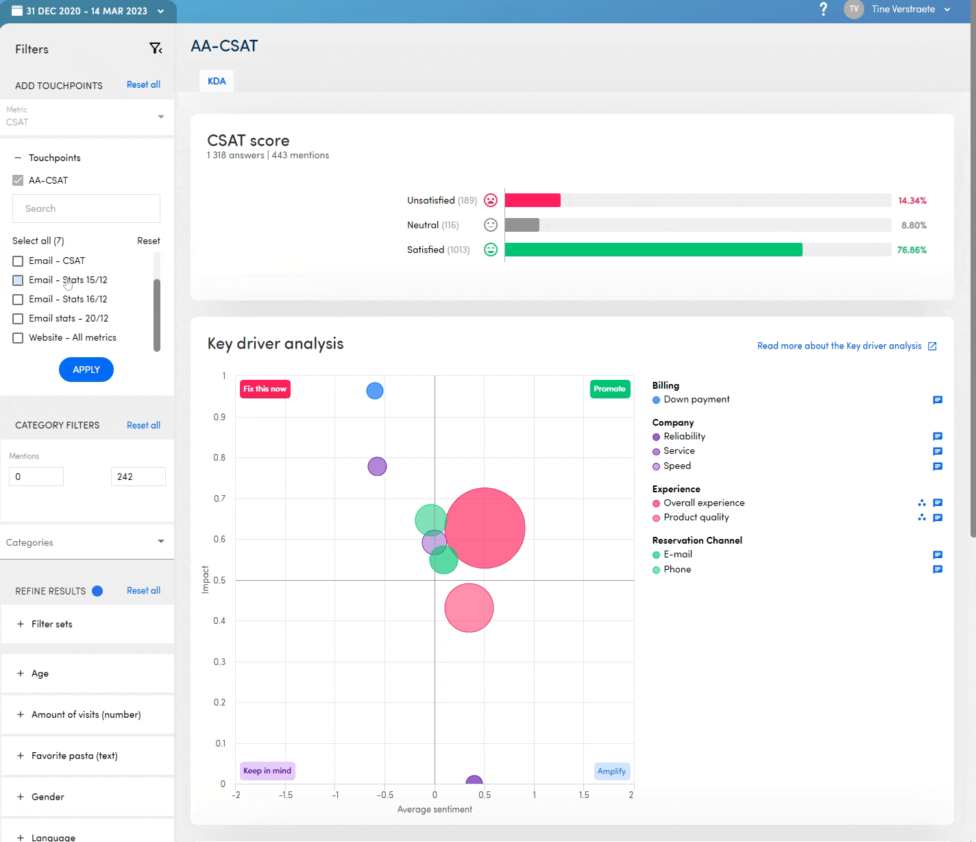 You will automatically end up on the Key driver analysis page of the touchpoint of your choice.