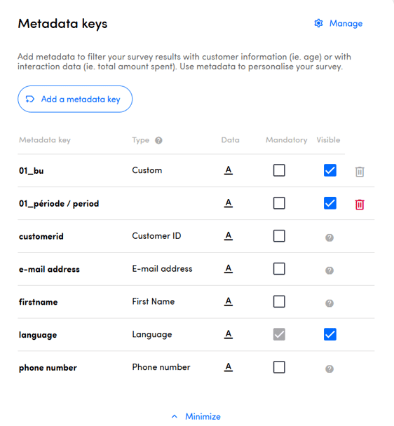 Before you do this, be sure to check if there are already metadata keys available in the Metadata key section. You can find this section when navigating to Touchpoint Settings.